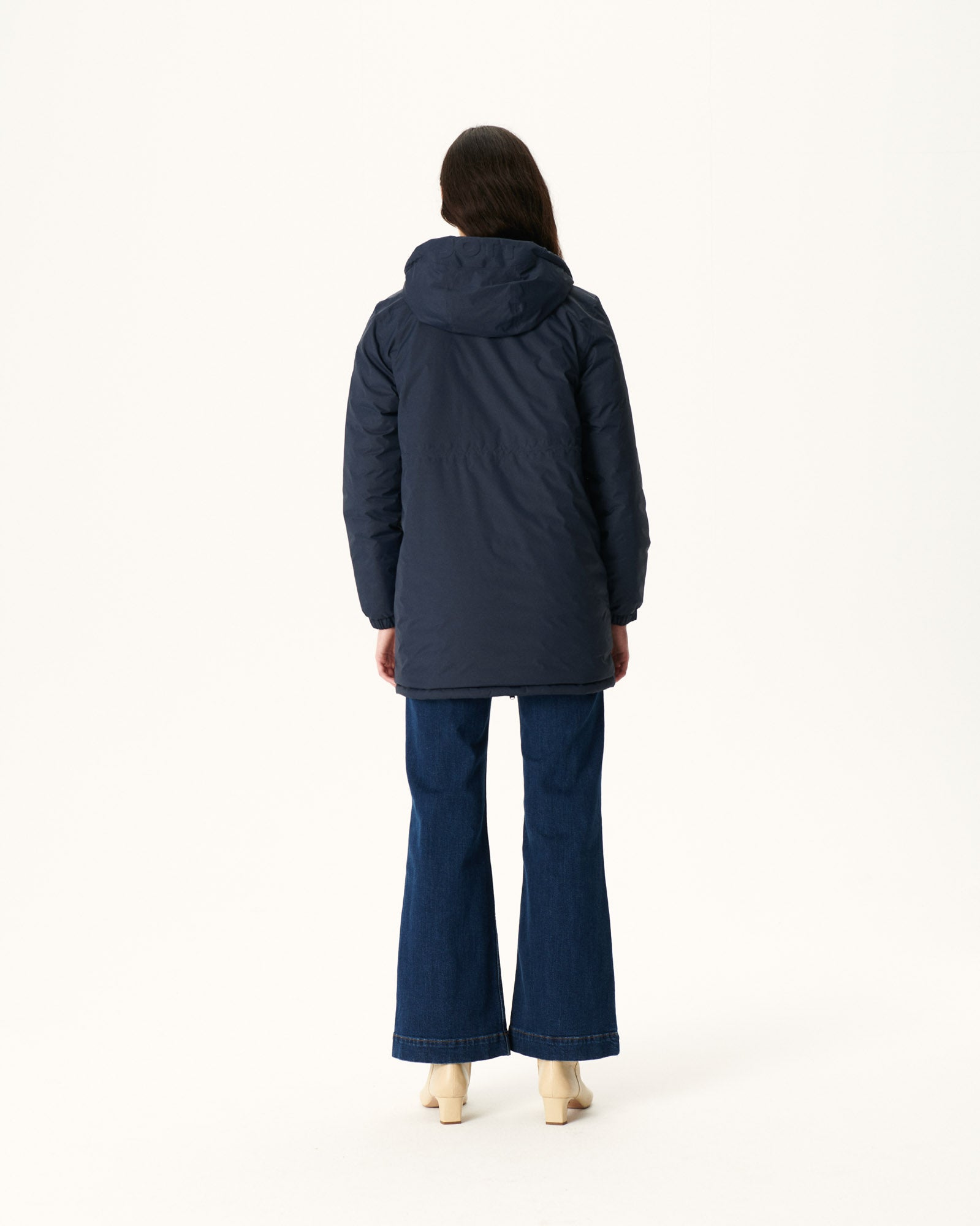 La doudoune longue réversible imperméable pour femme ROMA NOOS est une pièce permanente du vestiaire JOTT. Disponible en noir et en marine, elle est légère et composée d'une face imperméable avec fermeture étanche pour une étanchéité parfaite, et d'une autre matelassée et brillante dans le même coloris. Côté pratique, ce vêtement incontournable possède une fermeture par double zip, des poches passepoilées et un cordon de serrage intérieur pour l'ajuster parfaitement à votre taille.