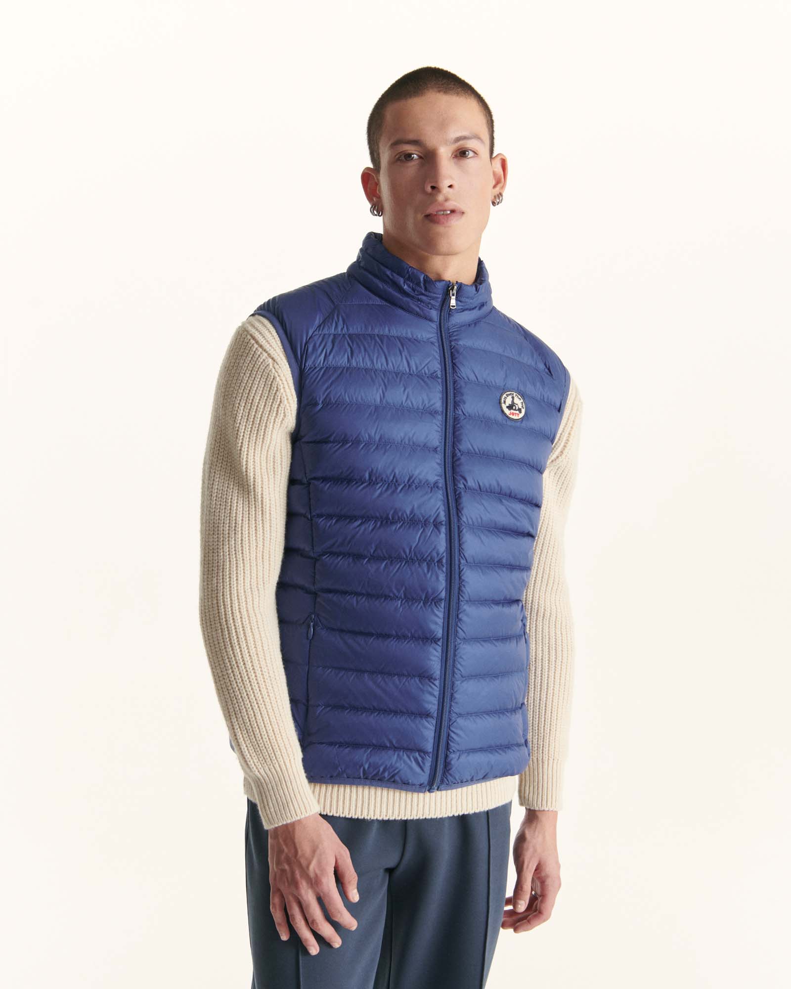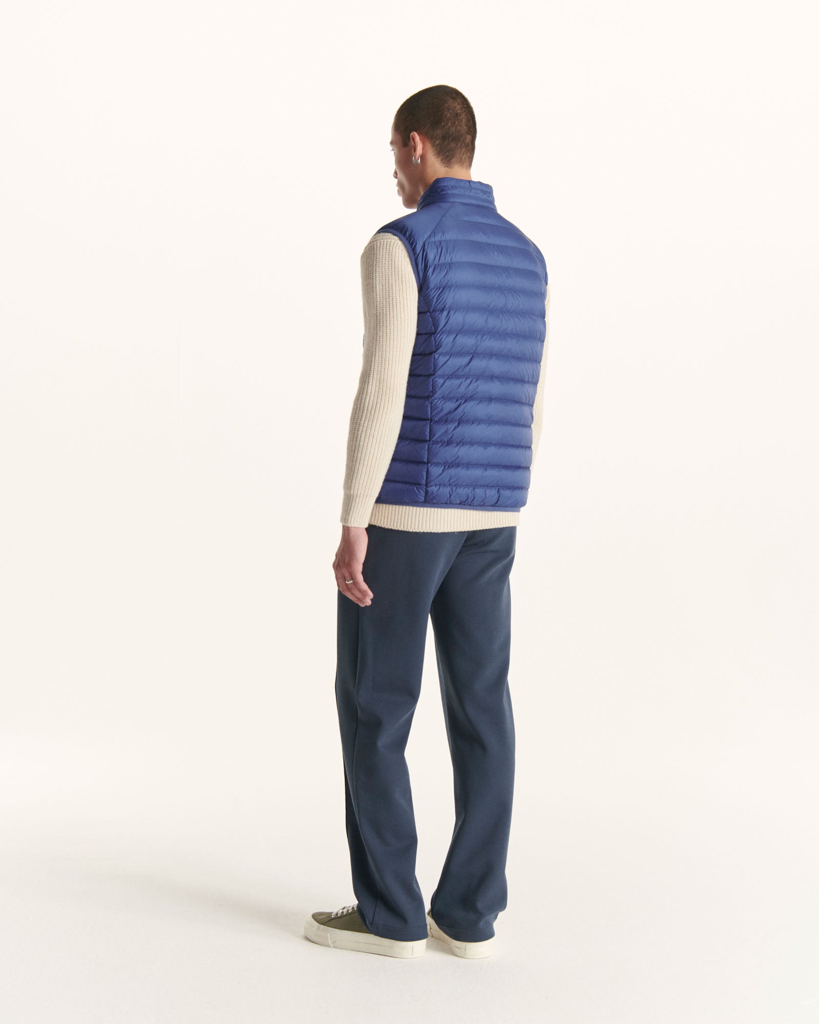 TOM, la doudoune légère sans manches iconique à petit col montant. Un must have à glisser sous toutes les vestes.