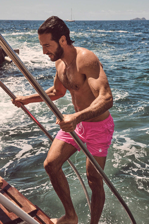 Un bañador corto bien cortado también se puede llevar fuera del agua. Combínalos con una camiseta lisa, una camisa fluida o incluso una sudadera ligera, y listo. El tejido se seca rápidamente y el corte se mantiene limpio. Varios de los bañadores de JOTT son tan adecuados para nadar como para pasear por la ciudad.