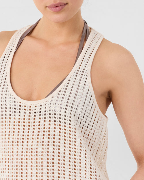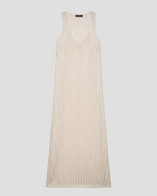 Avec sa coupe débardeur et sa fente sur le côté, EUGENIA est la robe crochet parfaite pour flâner tout l’été. À la fois décontractée et raffinée, elle épouse chaque mouvement avec fluidité, du bord de mer au marché.